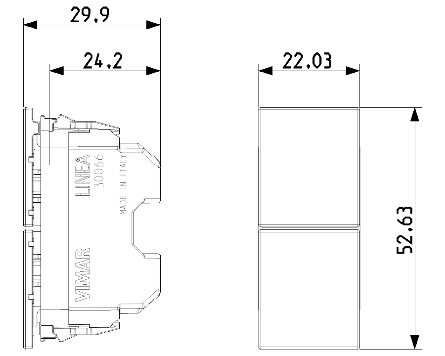 Thanks to the slender and flat design typical of the Linea Series, this device offers excellent aesthetic results and integrates perfectly with the plates of the same line.
