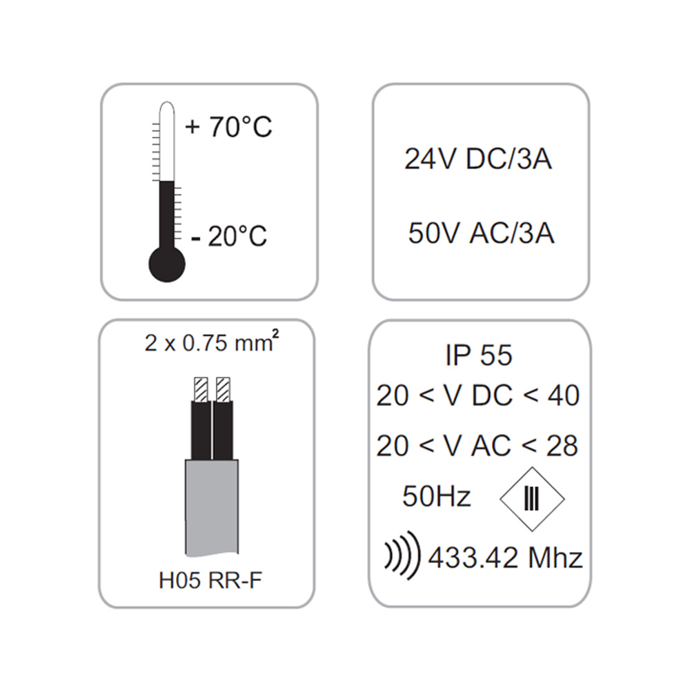 Powered by 24 V this small receiver allows you to control up to 2 motors.