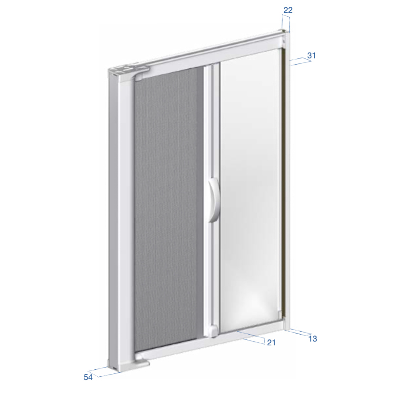 The Pasini VENERE Lateral 50 Standard two-door insect screen is the lateral scrolling version of the VENERE range. This series is elegant and characterized by an excellent quality / price ratio .