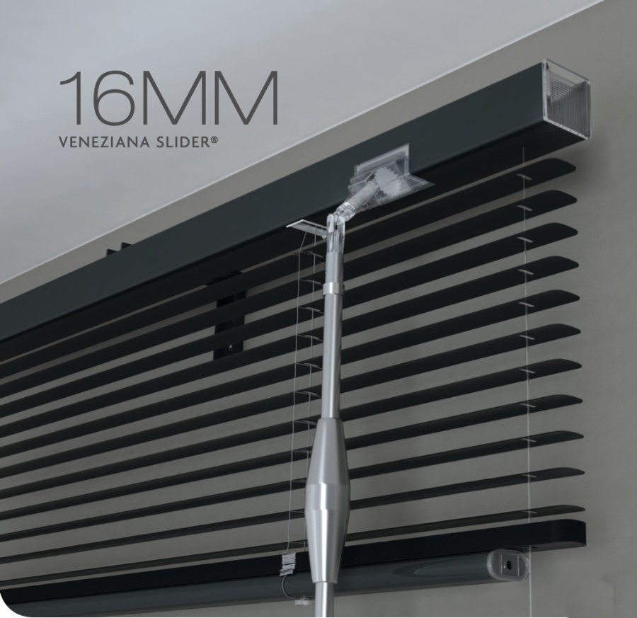 - Venetian blind Slider 16 mm is a blind with safe control Slider and rod for orientation;