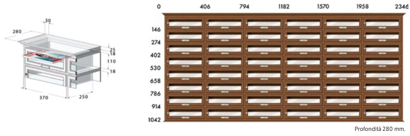 - Profiles and frames in high thickness solid wood with walnut finish;